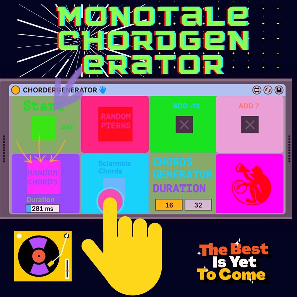 Monotale Chorder Generator is a Midi device for Max For Live who creates sequences of chords in a semi random way. The chords are already paired to have some sense when it becomes to be randomize, the sequence of the playing chords is totally random. The device comes with a Scramble option to invert or rotate the chord played. It also have the possibility to add a -12 note or a +7 note.