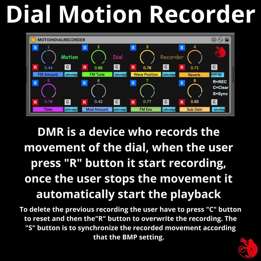 Dial Motion Recorder is a device that record the movement of the dials, as performed with the mouse or a midi controller, to start to record, press the button "R" and start moving the dial, once the user stops the movement, the dial automatically starts the playback, the user can erase the recording by pressing the "C" button. The "S" button is to synchronize the recording according to the BMP of the project. Each dial has his own duration in time. Buy: https://monotalefx.gumroad.com/l/ppuhfo